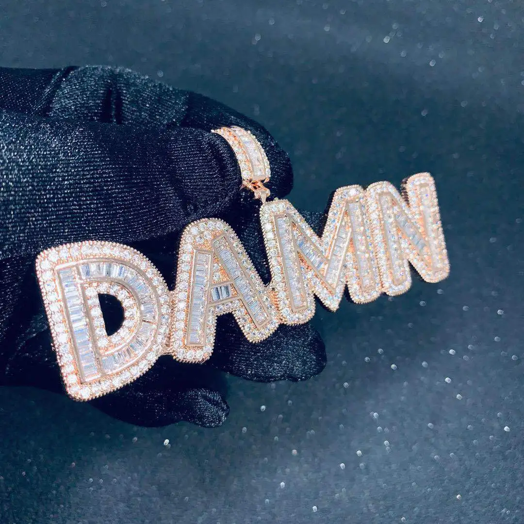 Name: Cadena de Colgante para Nombre de circón personalizada, joyería de circón, Hip Hop, Pandmade, collares personalizados Iced Out